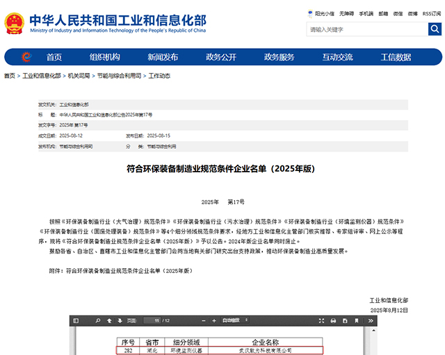 近日,國家工業和信息化部發布《符合環保裝備制造業規范條件企業名單(2025年版)》,敢為科技憑借在“環境監測儀器”領域的扎實技術實力、規范的生產管理體系與持續的創新實踐,成功通過專家評審與公示程序,入選國家工信部權威名單!