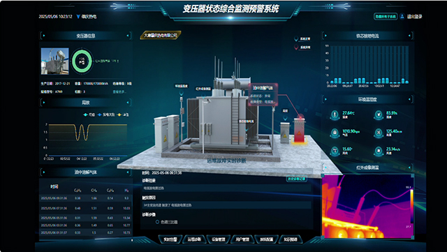 為提升變壓器運行可靠性與運維效率,本項目應用敢為科技的變壓器狀態綜合智能監測預警系統:通過實時捕捉油中溶解氣體、局部放電、鐵芯夾件接地電流等設備核心狀態信號,搭配紅外成像監測與環境參數采集,全面掌握設備運行動態;再結合行業通用的運行規程、檢修導則及定制化診斷模型,將監測范圍精準覆蓋主變壓器、套管、鐵芯、絕緣油等關鍵環節,真正實現 “從被動檢修到主動預警” 的在線監測目標。