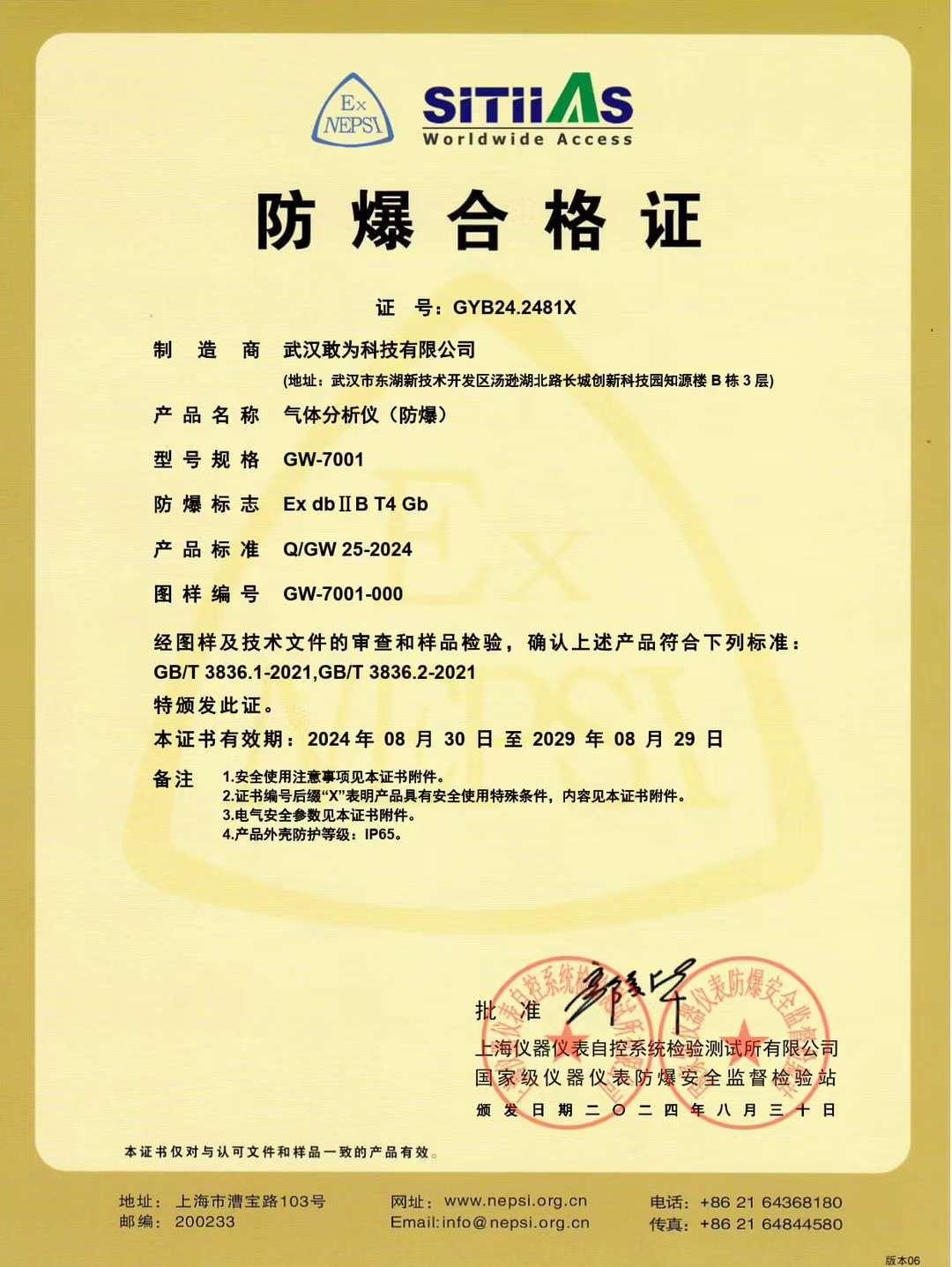 GW-7001 防爆型天然氣硫化氫分析儀是由敢為科技自主研發的新一代硫化氫分析儀,基于紫外吸收光譜氣體分析技術,GW-7001可用于測量過程氣中硫化氫含量。光源采用閃爍氙燈,壽命長,穩定性好。氣室采用光程反射氣室,靈敏度高,吸收信號強,測量精度高;光譜儀采用高精度狹縫、全息凹面光柵、線性CCD傳感器,紫外波段光譜響應快,波長準確度高,分辨率好,抗干擾能力強;采用獨特算法,可實現超低量程的氣體測量。