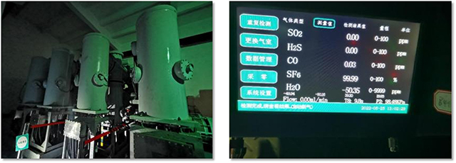 用戶單位 貴州六盤水某供電局 項目概況 敢為科技光譜型SF6氣體綜合分析儀 對貴州六盤水供電局轄下的室內、室外進行了測試,測試結果表明新充入的SF6純度符合要求,分解產物濃度較低,滿足實際應用。 項目現場